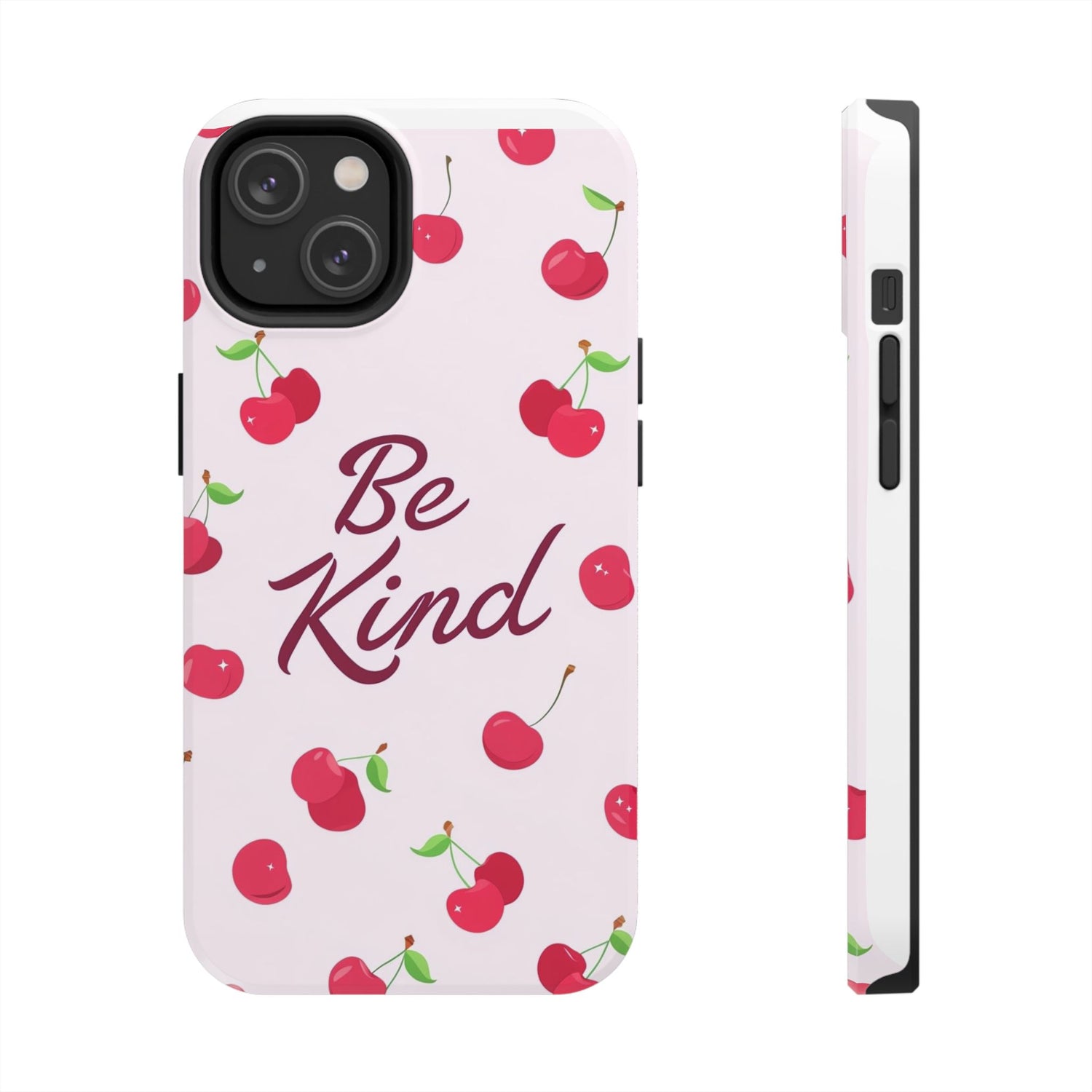 Cherry Pattern Tough Phone Case — Retro Pink Cherry Print Protective Cover