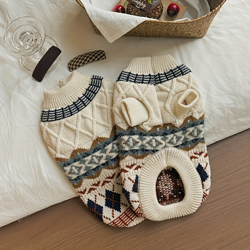 Cable Knit Dog Sweater Turtleneck Cold Weather Pullover Classic Knitwear With Fair Isle Pattern Thick Warm Winter Pet Clothes Cozy Turtleneck Sweatshirt Outdoor Outfits For Small Medium Large Dogs Cats