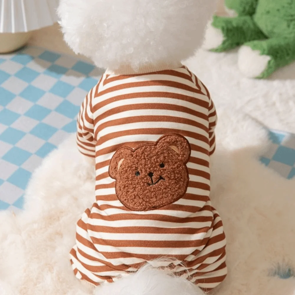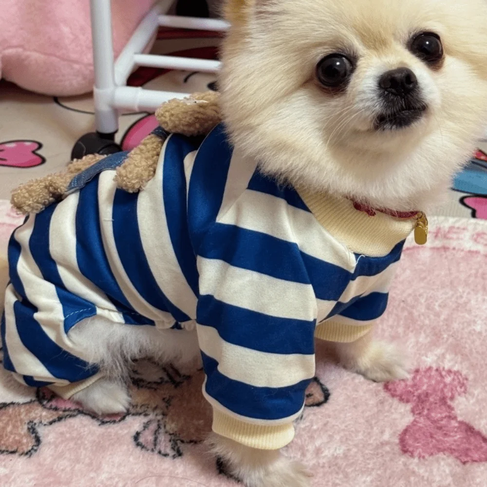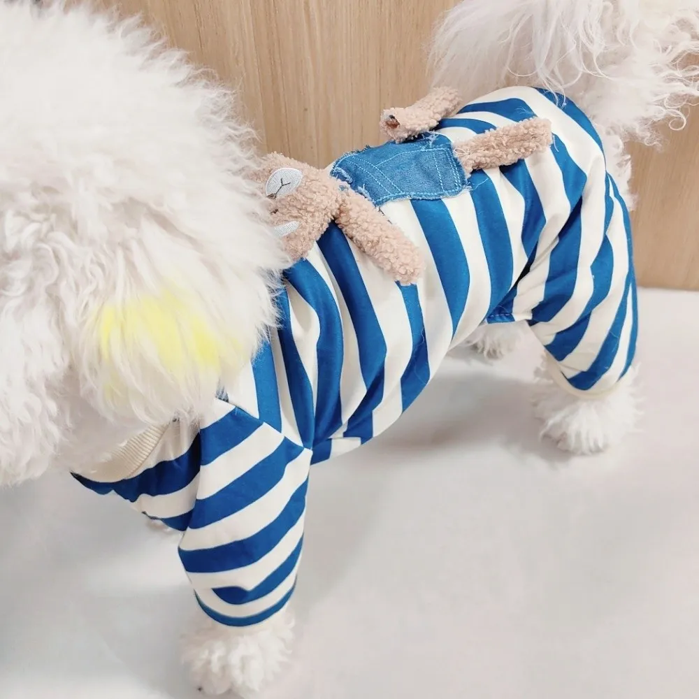 Cartoon Pattern Kawaii Pet Clothes Keep Warm Striped Pajamas Winter Puppy Clothes Animal Clothing Cotton Dog Jumpsuits