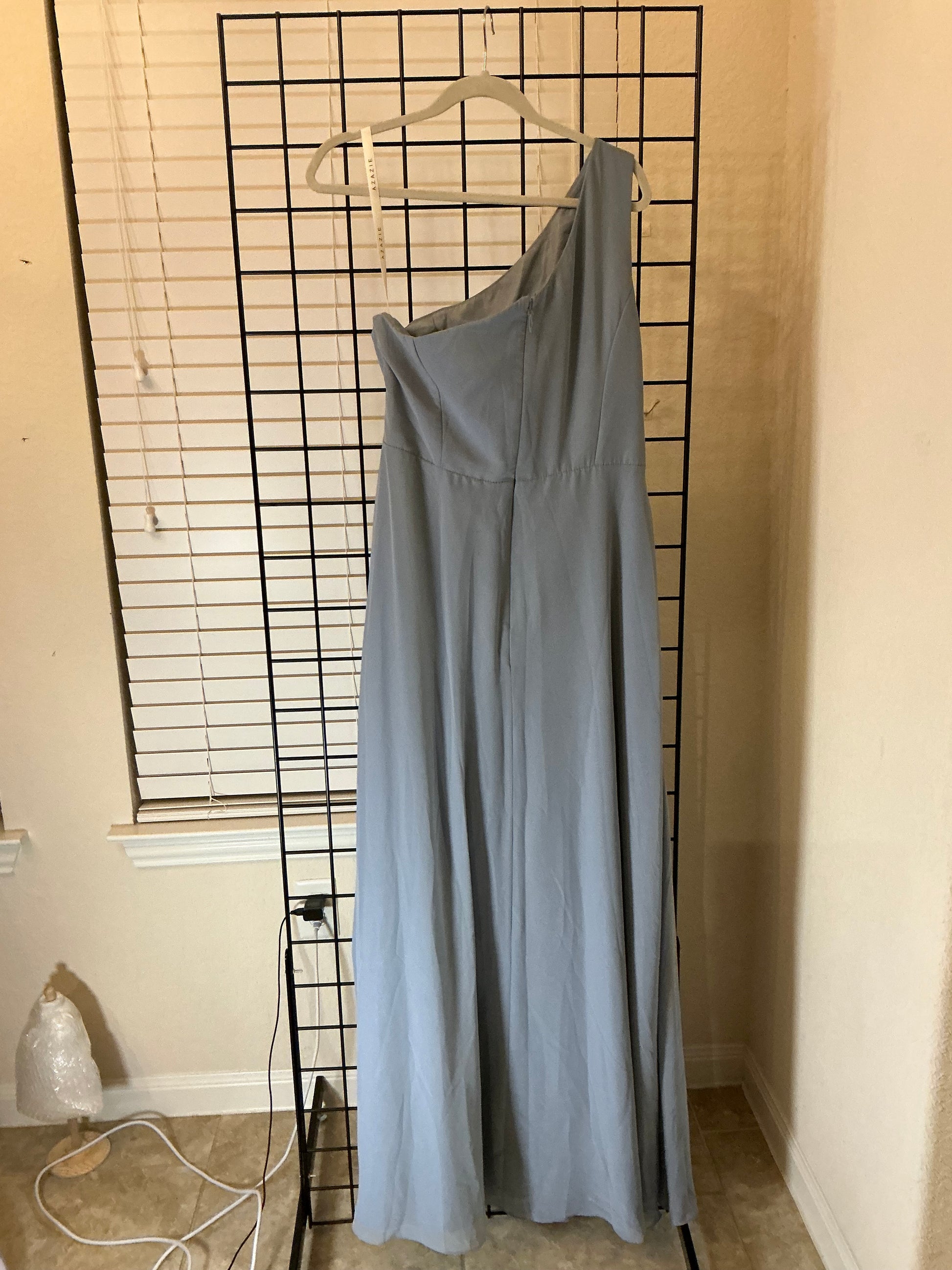 Azazie “Iris” One-Shoulder Formal Gown in Dusty Blue – Size 14