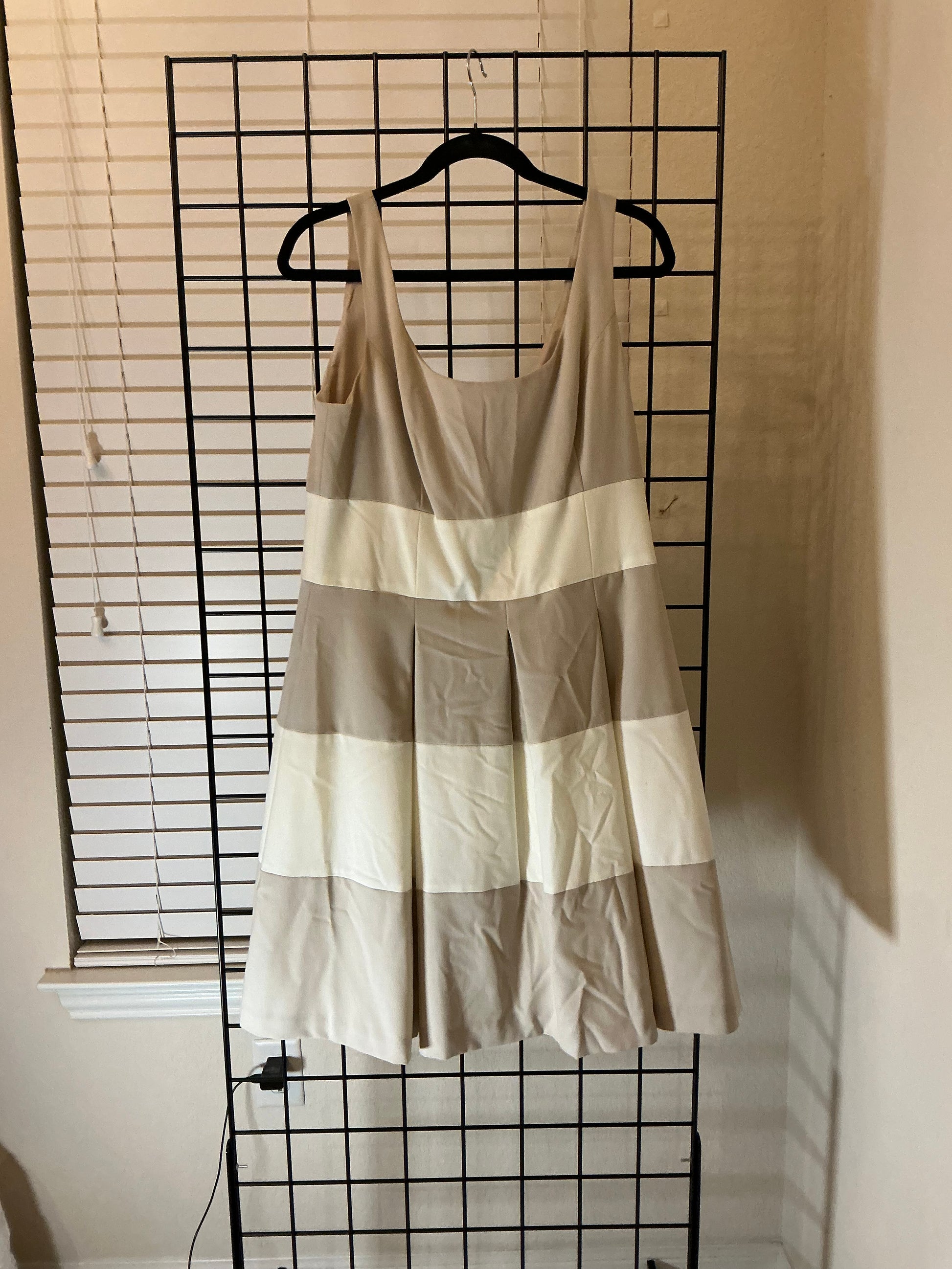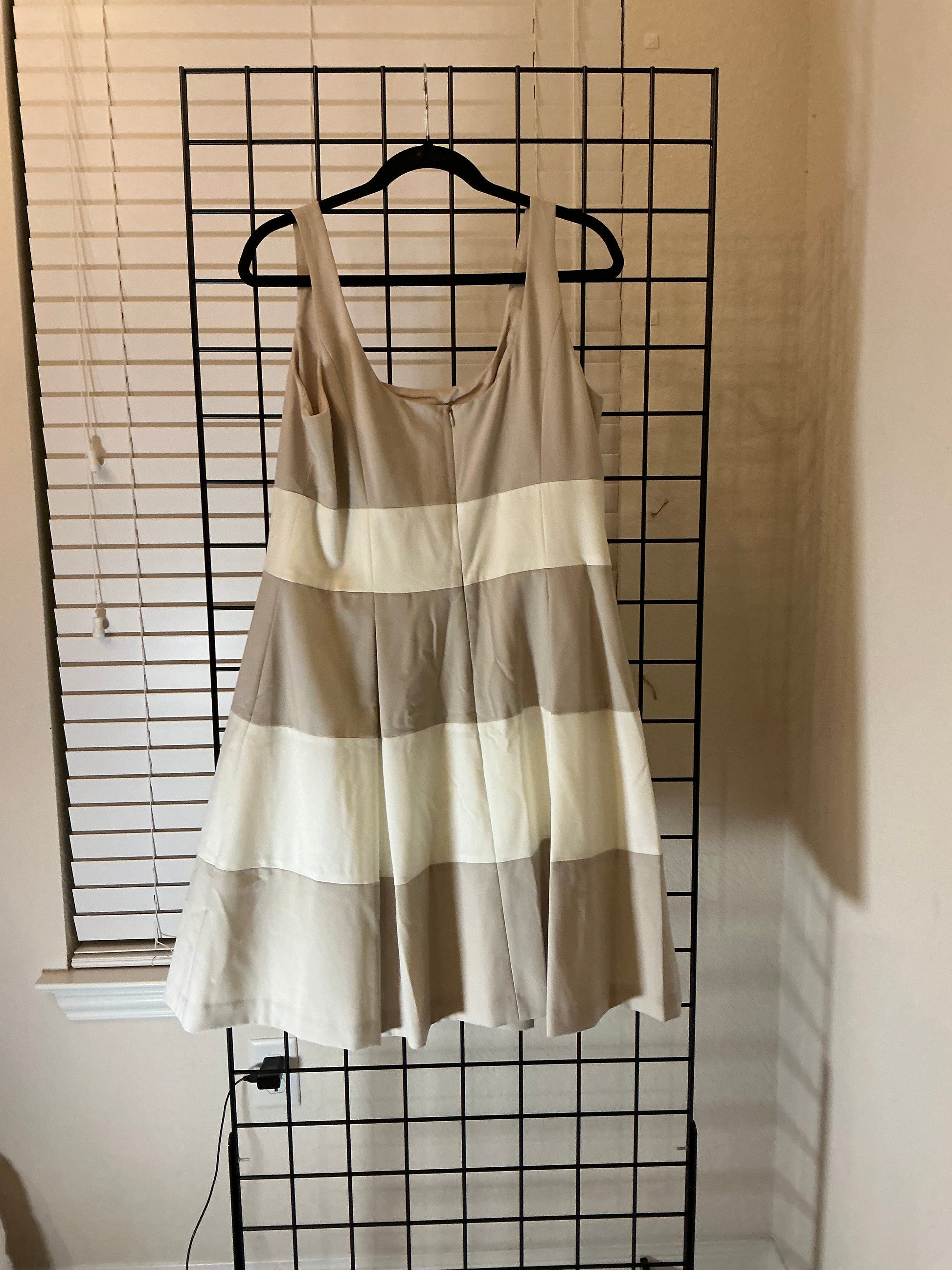 Lauren Ralph Lauren Taupe & Cream Fit-and-Flare Dress – Size 14