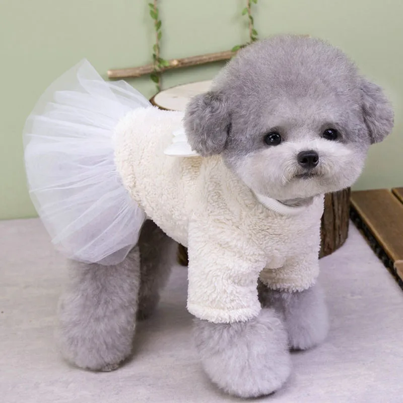Pet Winter Clothes Rose Beige Dress Long Sleeve Plush Hoodies White Tulle Skirt Dog Clothes Puppy Dresses For Small Dogs Chiwawa